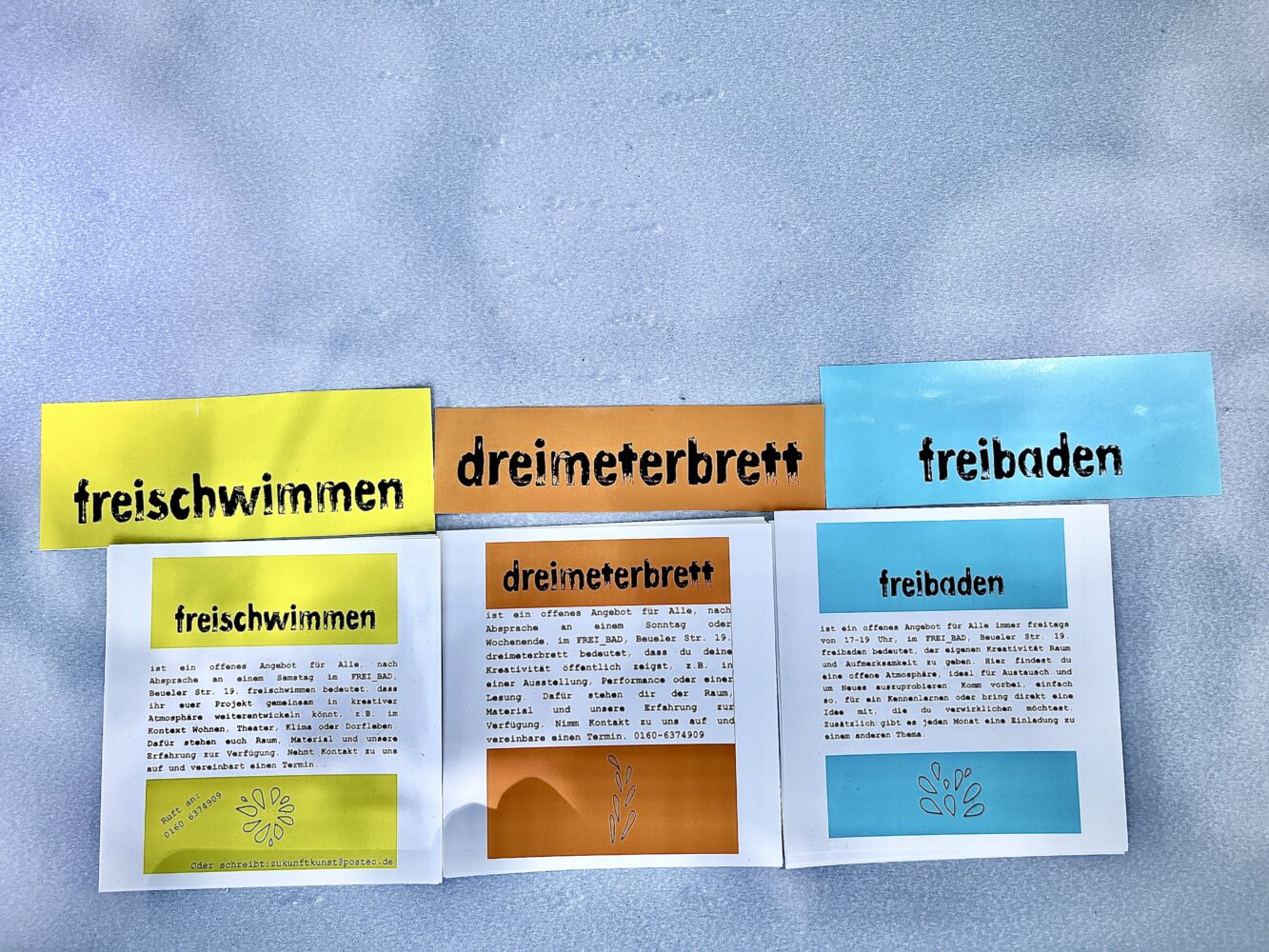 #dreimeterbrett ist ein offenes Angebot für Alle. dreimeterbrett bedeutet, dass du deine Kreativität öffentlich zeigst, z.B. in einer Ausstellung, Performance oder einer Lesung. Dafür stehen dir der Raum, Material und unsere Erfahrung zur Verfügung. Nimm Kontakt zu uns auf und vereinbare einen Termin für einen Sonntag.