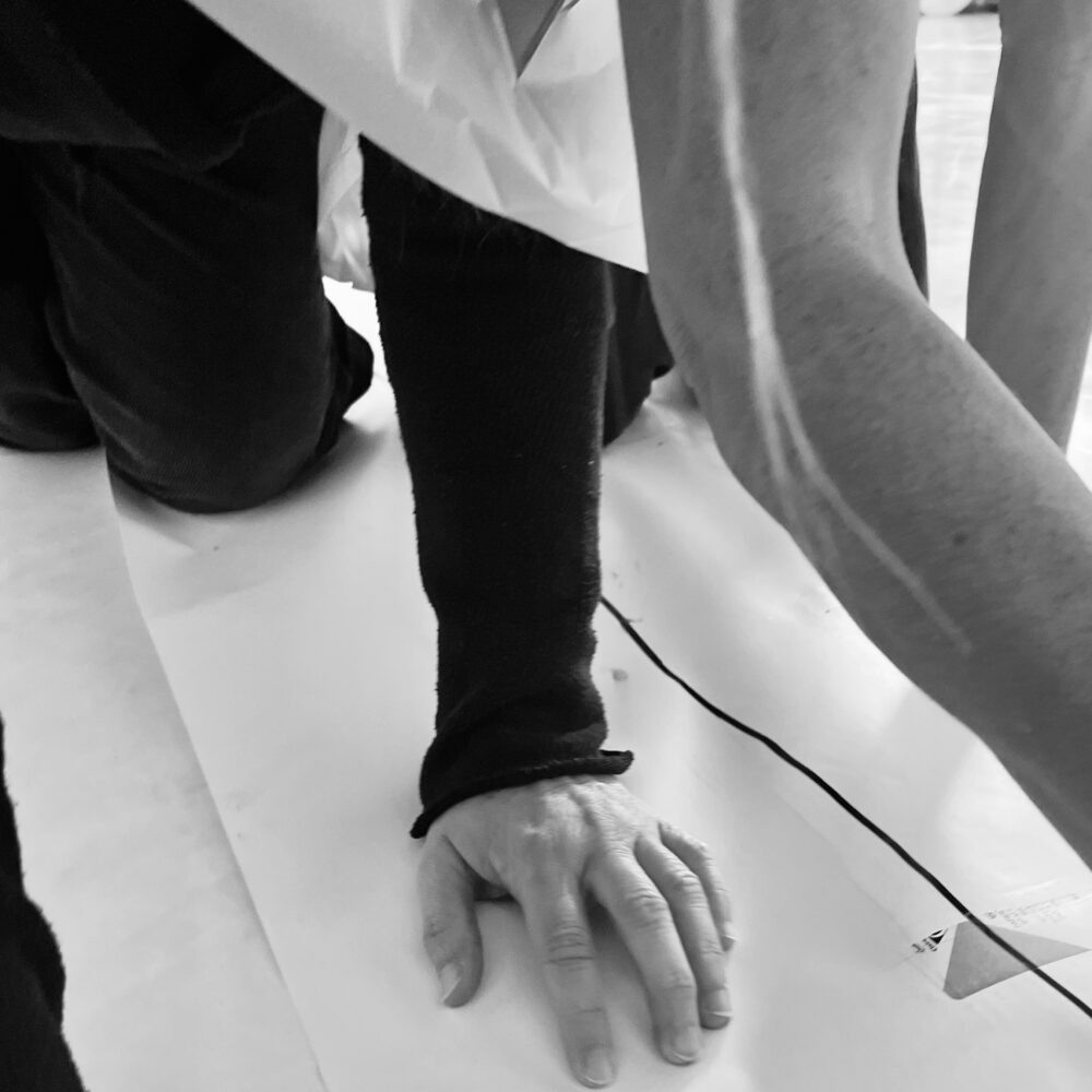 Das AtelierStudio ist ein weißer, dankbarer Raum. In Kokreation mit Ricarda Rommerscheidt (Zeichnung, Malerei, Performance) und Ulrike Greve (Bildkunst, Tanzimprovisation) erkunde ich Begegnungsflächen von Live-Zeichnung, SoundCollagen und improvisierten Tanz und deren Dynamiken. Recherchierend und dialogisch entwerfen wir gemeinsam neue SpielARTen und MischFORMen mit Stift, Papier, Sound, Bewegung und Gesten. Dabei entstehen Ideen für neue Performanceformate. Einen chronologischen, visuellen Einblick in unsere Arbeit bekommt man hier.